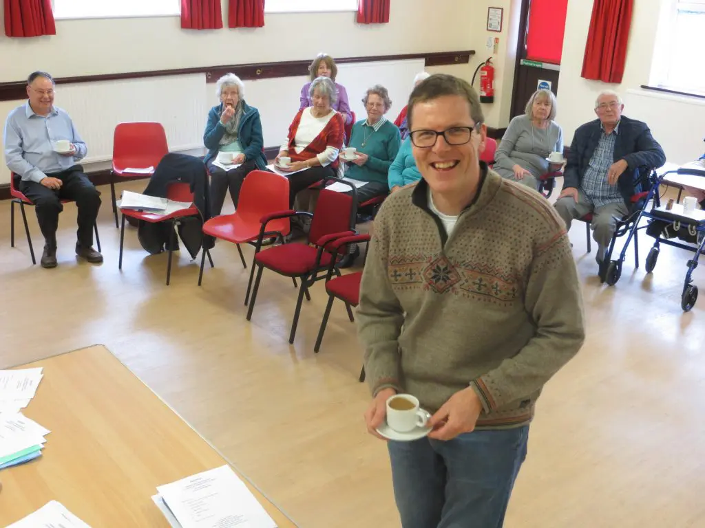 If you want to come to the service with a drink and a hot cross bun, biscuit or cake, then please do. There will be time to chat at the end of the service once Vernon has finished playing.”