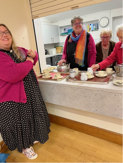 Bishop Mary serving tea to members of the Mothers’ Union in our Deanery at St James, Finchampstead.