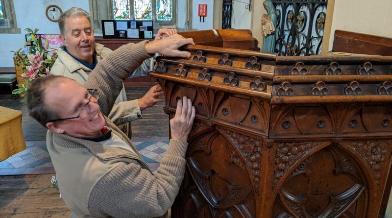Read MoreThis photo shows Alistair and Mark, my new best friends, returning the pulpit they have remade to Church this week.