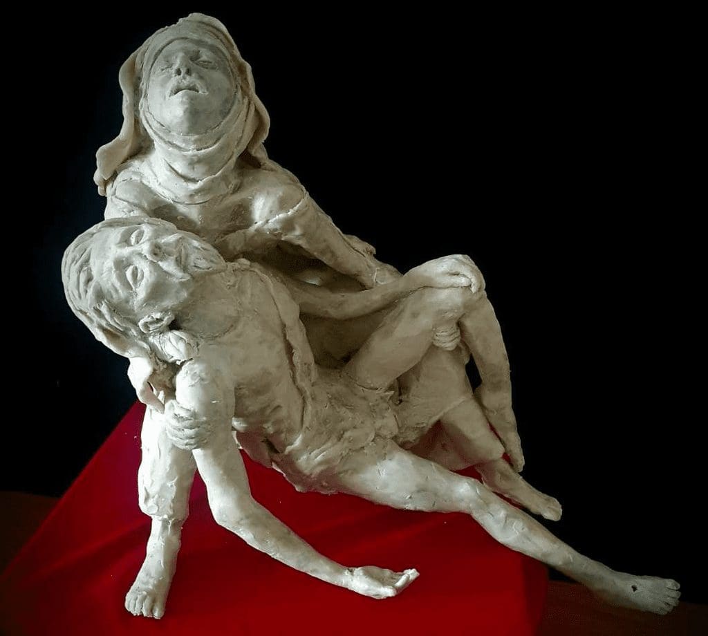 Sadly, two things were destroyed totally. One was the Parish banner, made by the ladies of the parish in 1890, which had hung on the pillar behind the lectern for a century and a quarter. The other was a wax maquette of Mary cradling the dead Jesus, which we had only just borrowed from the artist, Russell Bignold.