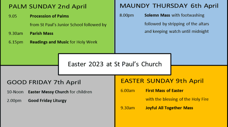 Read MoreServices Palm Sunday – April the 2nd 9.00am Procession of palms from St Paul’s School, followed by 9.30am Parish